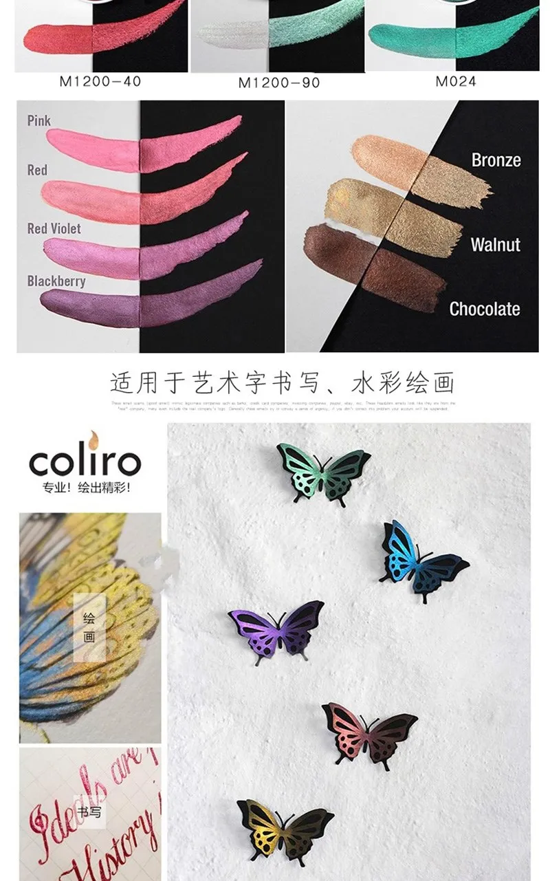 Features Rich colors, glitter effect, particularly strong coverage, and a feeling similar to acrylic paint, but not as heavy as acrylic paint. In terms of English calligraphy writing, this pigmented hairspring has a very fine performance. The shade part will have a slight bump effect after it is completely dry. It is very magical ~ it is blingbling under different light, which is too suitable for creation!